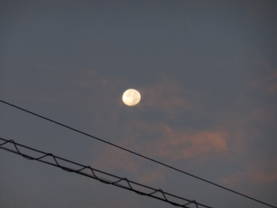 ふと見上げれば、まだ空には微妙に光る月が出ています。